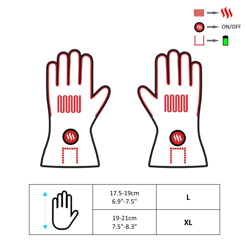 Grelni element se nahaja okoli vseh prstov in na vrhu dlani, zahvaljujoč kateremu bo vaša roka ves čas prijetno topla