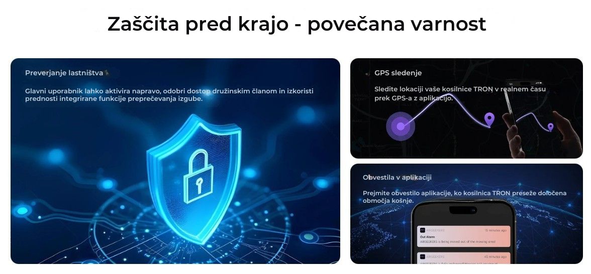 Z napredno umetno inteligenco, vizualno navigacijo in RTK pozicioniranjem, profesionalnim mulčenjem ter izjemno terensko zmogljivostjo je TRON idealna izbira za zahtevne domače uporabnike, vile, večje vrtove in kompleksne parcele.