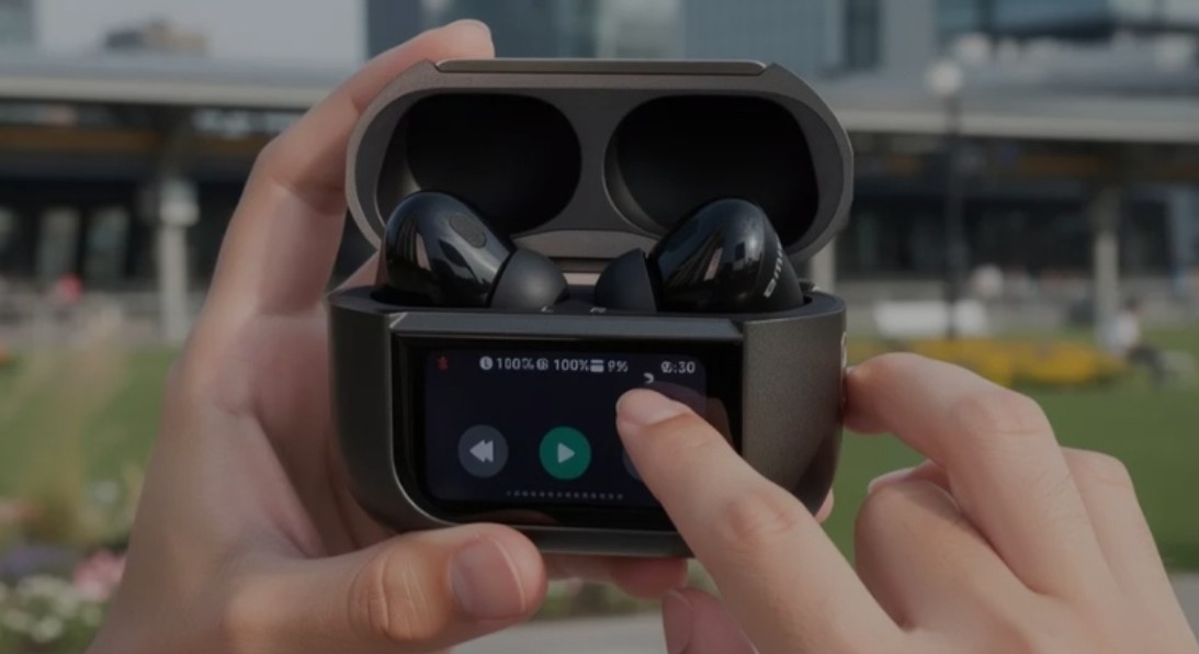 AIWA EBTW-350 brezžične TWS slušalke z ANC z Bluetooth 5.4, do 20 h delovanja, etui z barvnim ekranom na dotik