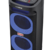AIWA KBTUS-D800 je ustvarjen za resne zabave. Z dvojnima 8″ subwooferjema in dvema 3″ visokotoncema zagotavlja izjemno globok bas, čiste srednje tone in jasne visoke frekvence. Skupna izhodna moč 80 W RMS (do 800 W PMPO) poskrbi, da glasba napolni vsak prostor – doma, na vrtu ali na dogodkih.