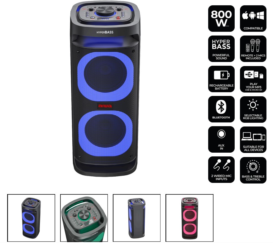 Robustno ohišje, velik format in impresiven zvok naredijo AIWA KBTUS-D800 popolno izbiro za zabave, karaoke večere, rojstne dneve, dogodke in DJ uporabo.