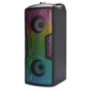 Prenosljivost je zagotovljena z izvlečnim kovinskim ročajem in kolesi, upravljanje pa je enostavno s pomočjo brezžičnega daljinskega upravljalnika in natančnih kontrol za bas, visoke tone in DSP izenačevalnik.