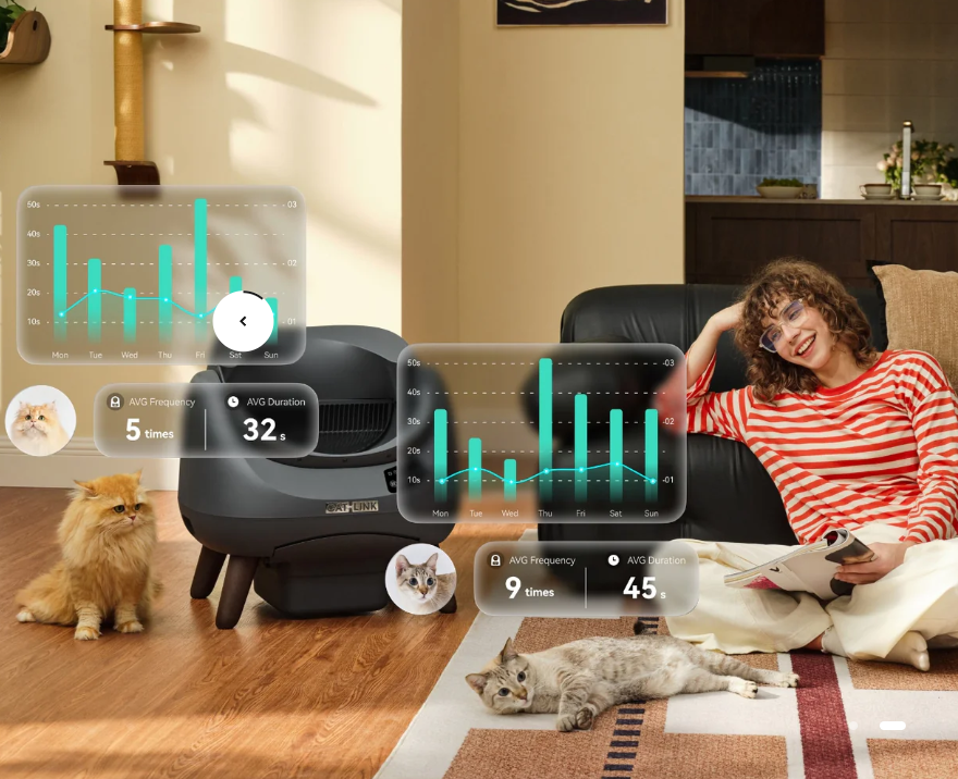 CATLINK OPEN-X združuje udobje za mačke in praktičnost za lastnike. Njegova odprta, prostorna zasnova zagotavlja naravno svobodo gibanja, medtem ko pametne funkcije poskrbijo za čistočo in svežino brez napora. Je vrhunski pametni mačji WC, zasnovan za lastnike mačk, ki želijo maksimalno higieno, udobje in nadzor. Idealen za tiste, ki so pogosto odsotni, saj omogoča popoln nadzor prek mobilne aplikacije in zagotavlja čistočo brez kompromisov.
