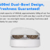 - Svežina hrane: Dozirnik ima samodejni vrtljiv pokrov, tako, da ohranja hrano svežo in okusno, kar spodbuja vašega ljubljenčka k rednemu hranjenju.