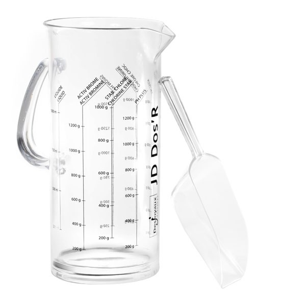 JD merilna posoda z dozirno lopatko je nepogrešljiv pripomoček za pravilno in varno doziranje sredstev za obdelavo bazenske vode. Namenjena je natančnemu odmerjanju tekočih in prašnih bazenskih pripravkov, kar je ključnega pomena za učinkovito in varno vzdrževanje vode.