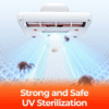 - UV sterilizacija: UV svetloba učinkovito odstrani kar 99,99 % alergenov, pršic in bakterij. Zajame delce, majhne kot mikron, odstrani prah/dlake hišnih ljubljenčkov in prhljaj/cvetni prah/ostanke pršic ter prepreči razmnoževanje pršic pri izvoru.