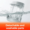 - Odstranljivi, pralni deli: Dele naprave je možno odstraniti ter oprati z vodo, kar pomeni, da jih brez težav ponovno uporabite. To je okolju prijazno in ekonomično.